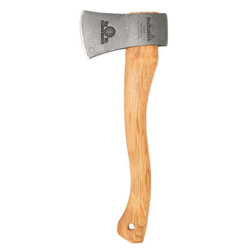 Øksehovedet håndsmedes gennem en langvarig proces med mange slag, der giver en tæt struktur i stålet. God til friluftsliv, spejderlejren, haven og mindre brændeopgaver.
