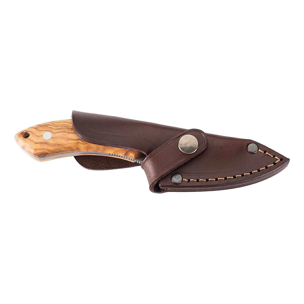 Flot arbejds- og snittedolk, der ligger rigtigt godt i hånden, og derfor er velegnet til det fine snitte arbejde, hvor der skal arbejdes præcist og sikkert. Det gode greb gør også dolken velegnet til grovere opgaver, hvor der brug for at kunne tvinge kniven rundt i træet.