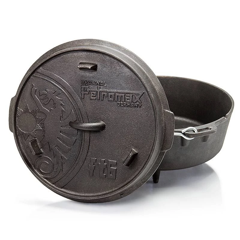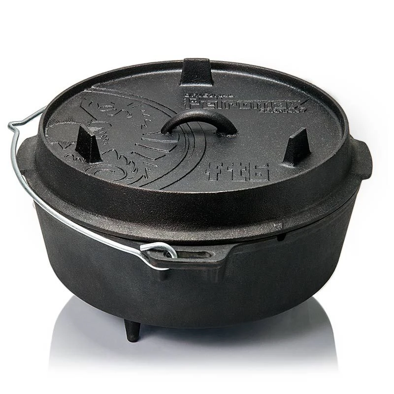 Som en ekstra bonus har låget også ben og kan bruges som selvstændig pande. Låget har selvfølgelig også en kant, så du kan lægge gløder eller grillkul på og dermed øge ovn funktionen.