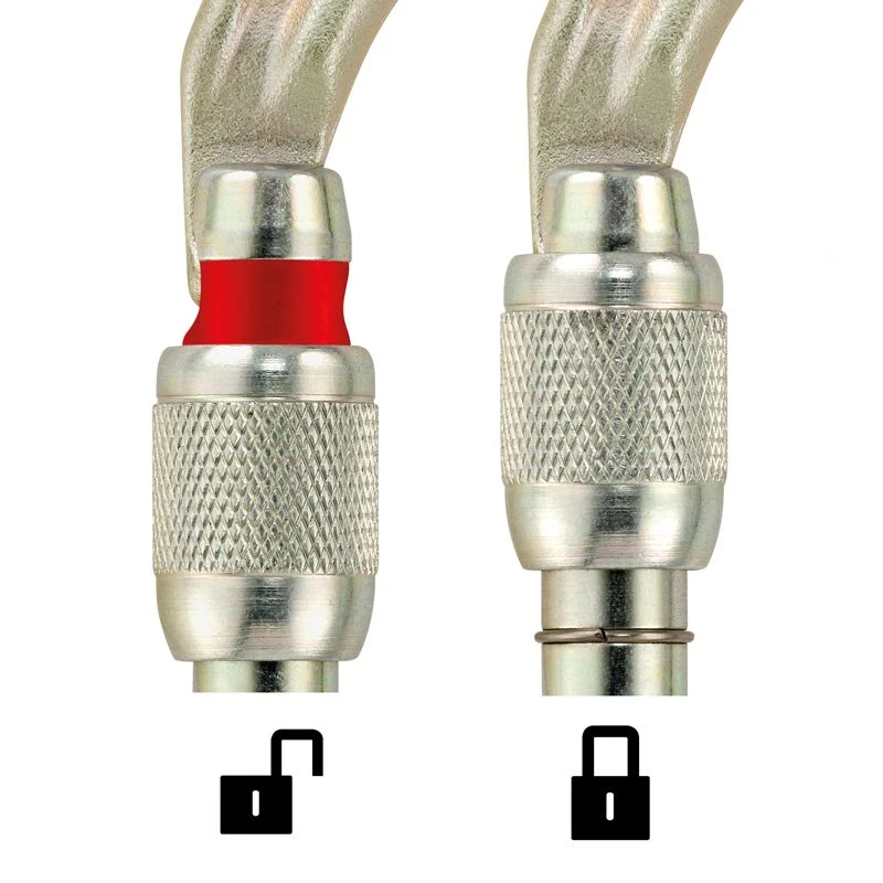Karabinen har skruelukke, så den kan låses og anvendes sikkert. Den er velegnet til brug ved etablering af standplads, ankre og tilsvarende. Bemærk i øvrigt den røde sikkerhedsmarkering, der hjælper dig med at huske at få karabinen sikret 100%.