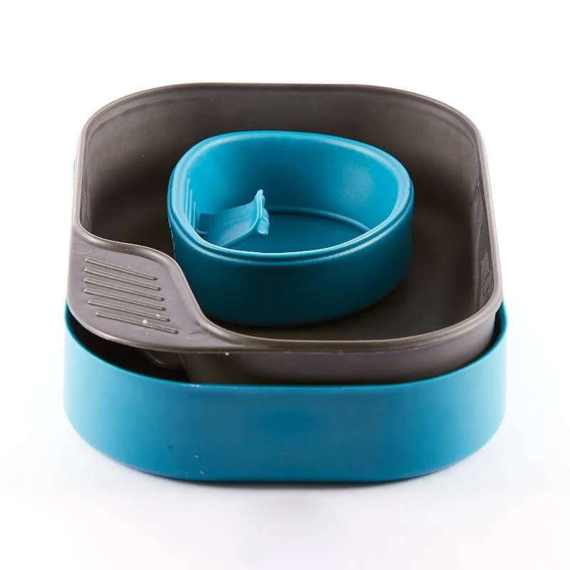 Wildo Camp-A-Box er et smart og kompakt tallerkensæt bestående af over- og underdel, der bruges som to effektive tallerkener og med tilhørende foldekop.